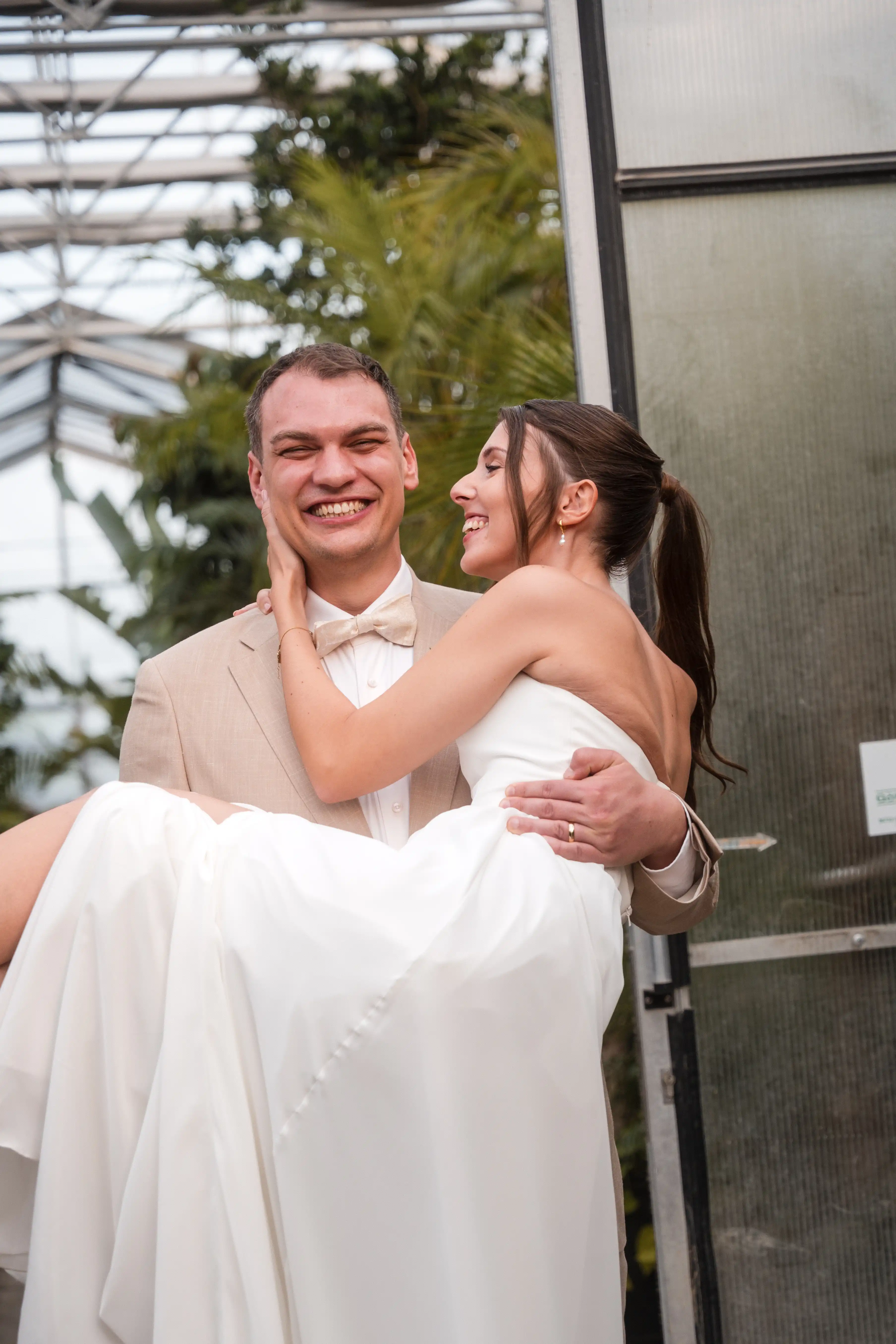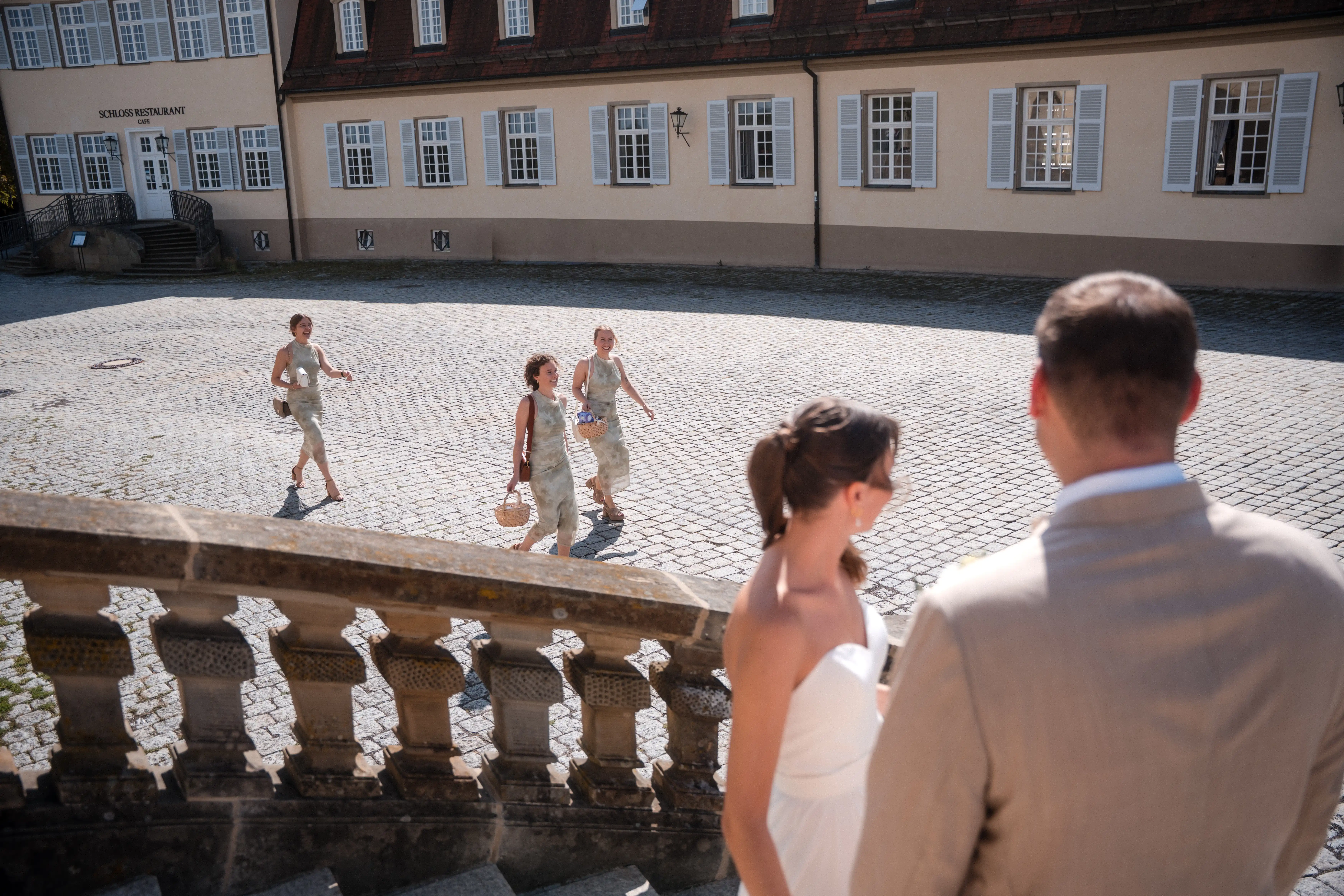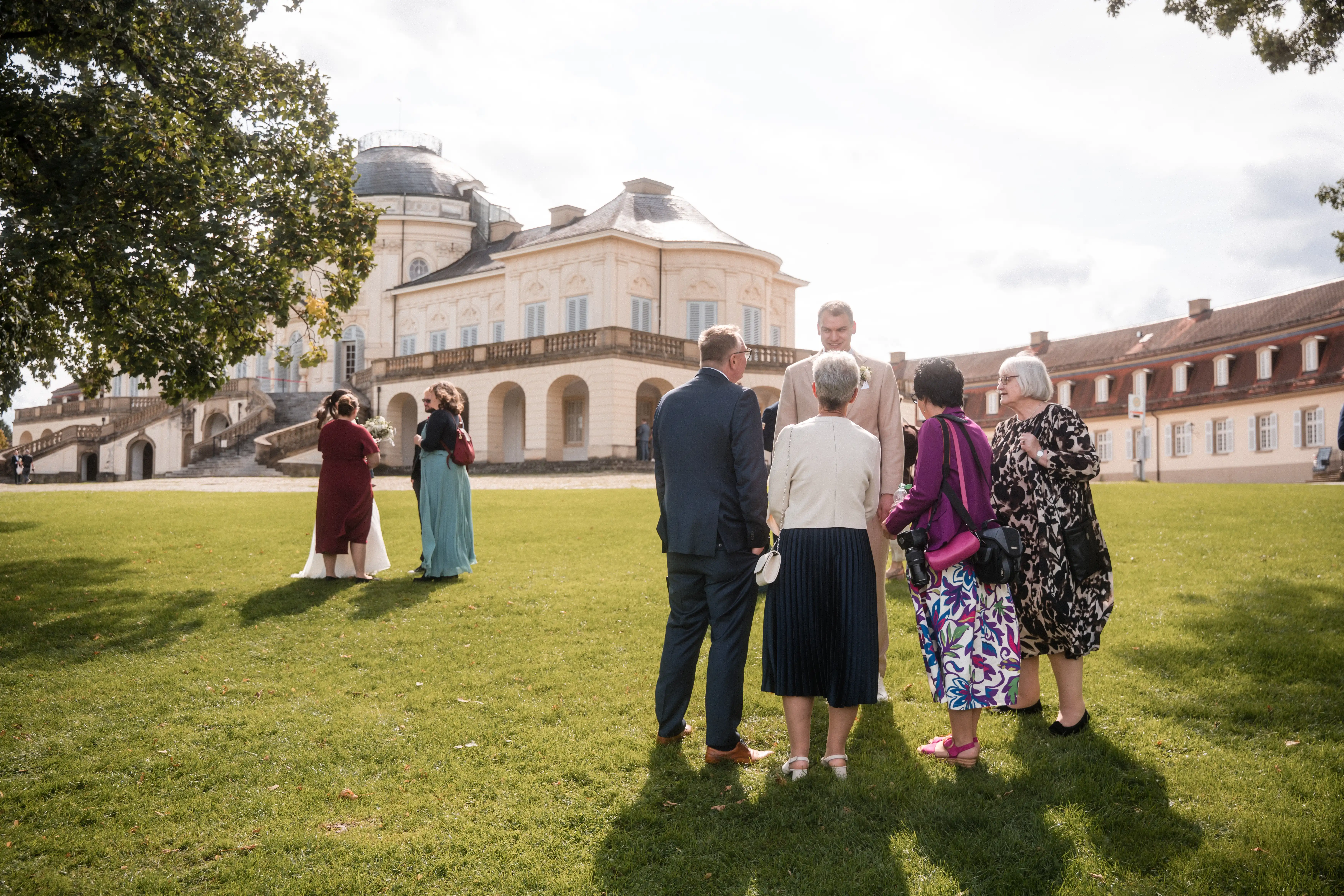 Royale Trauung trifft auf Wintergarten. Bei dieser Hochzeit passte einfach alles: eindrucksvolle Schlossatmosphäre, genau das richtige Maß an Sonne für die perfekte Lichtstimmung und ein ausgelassenes Fest im Grünen.