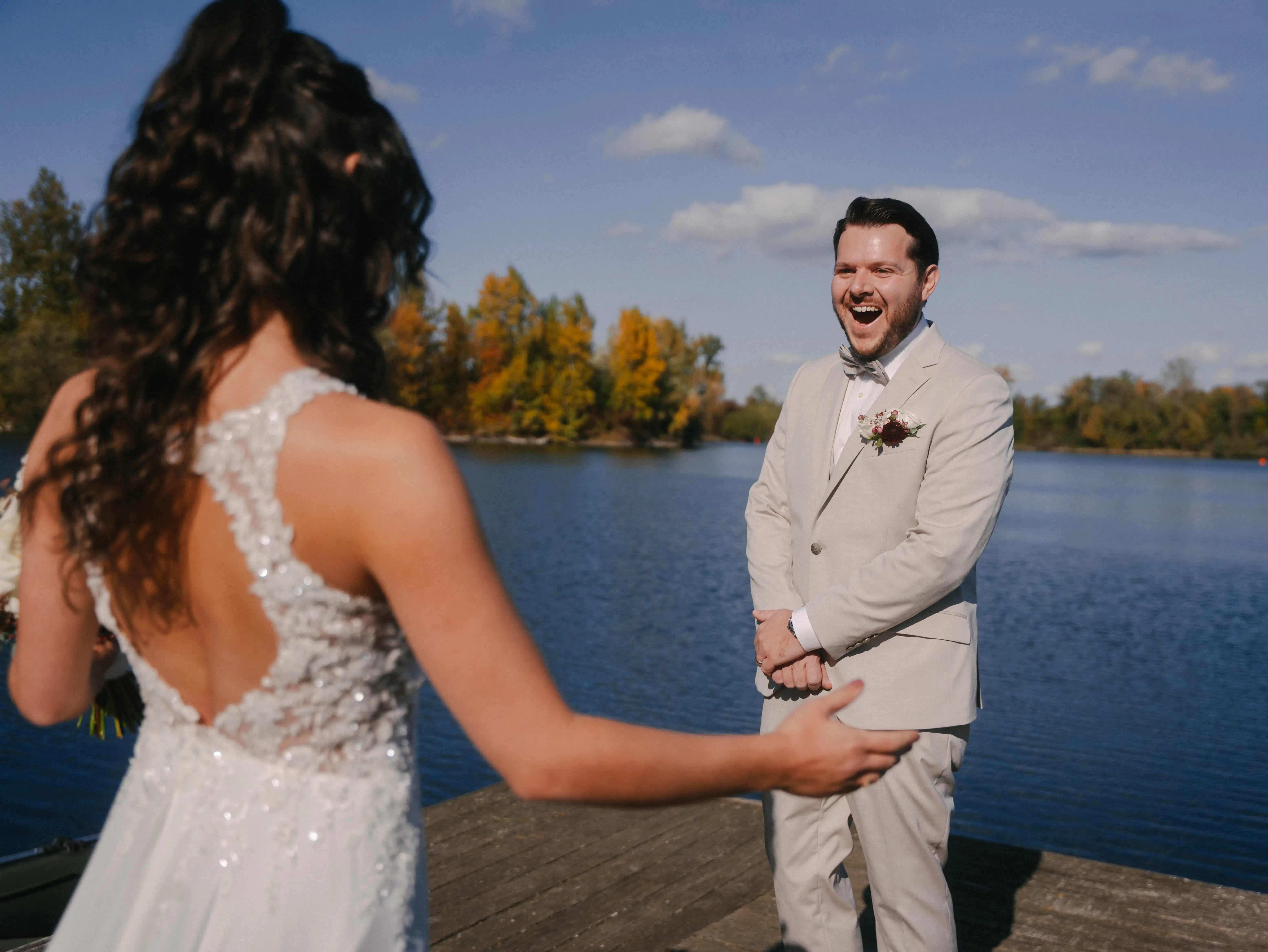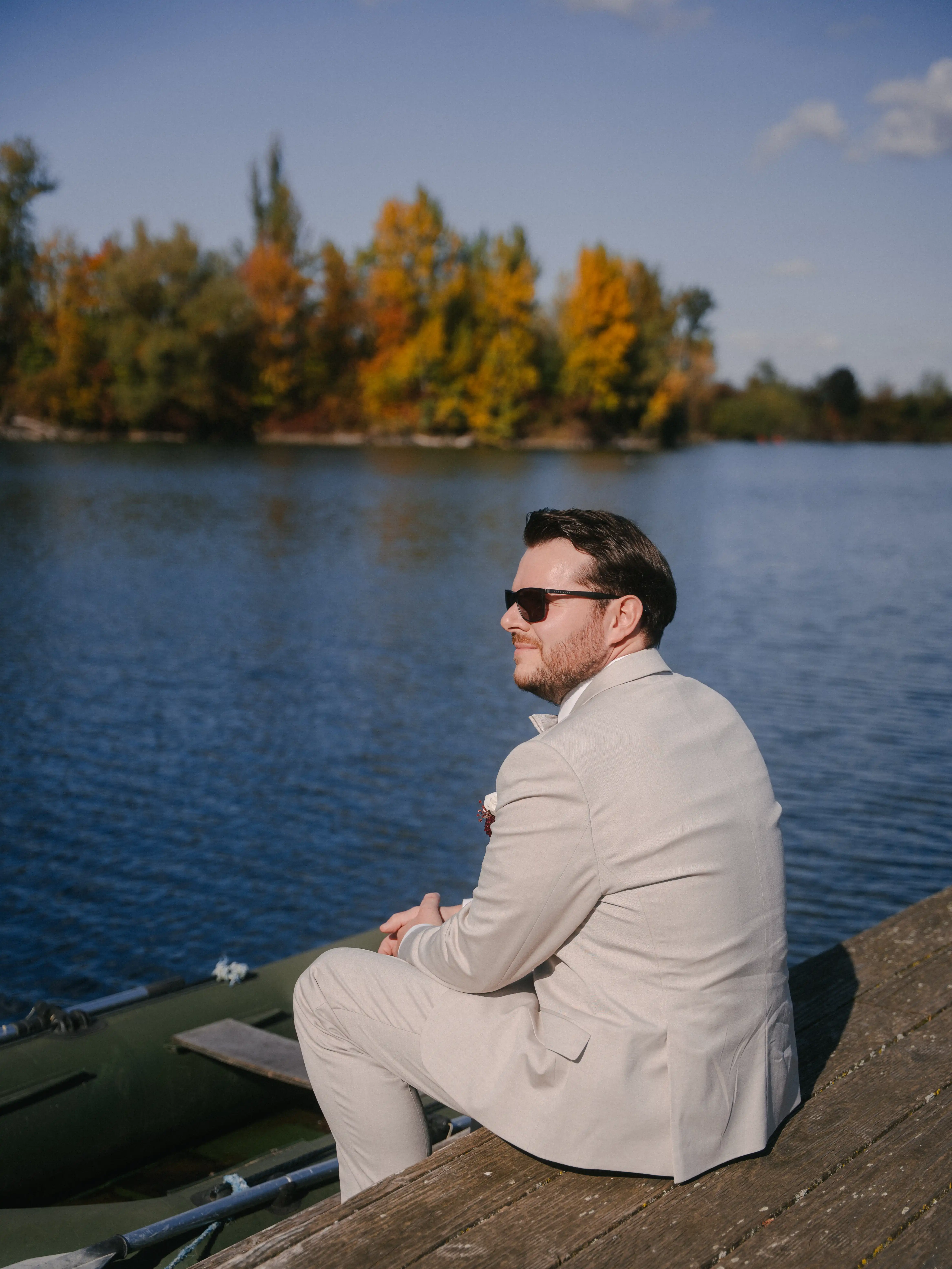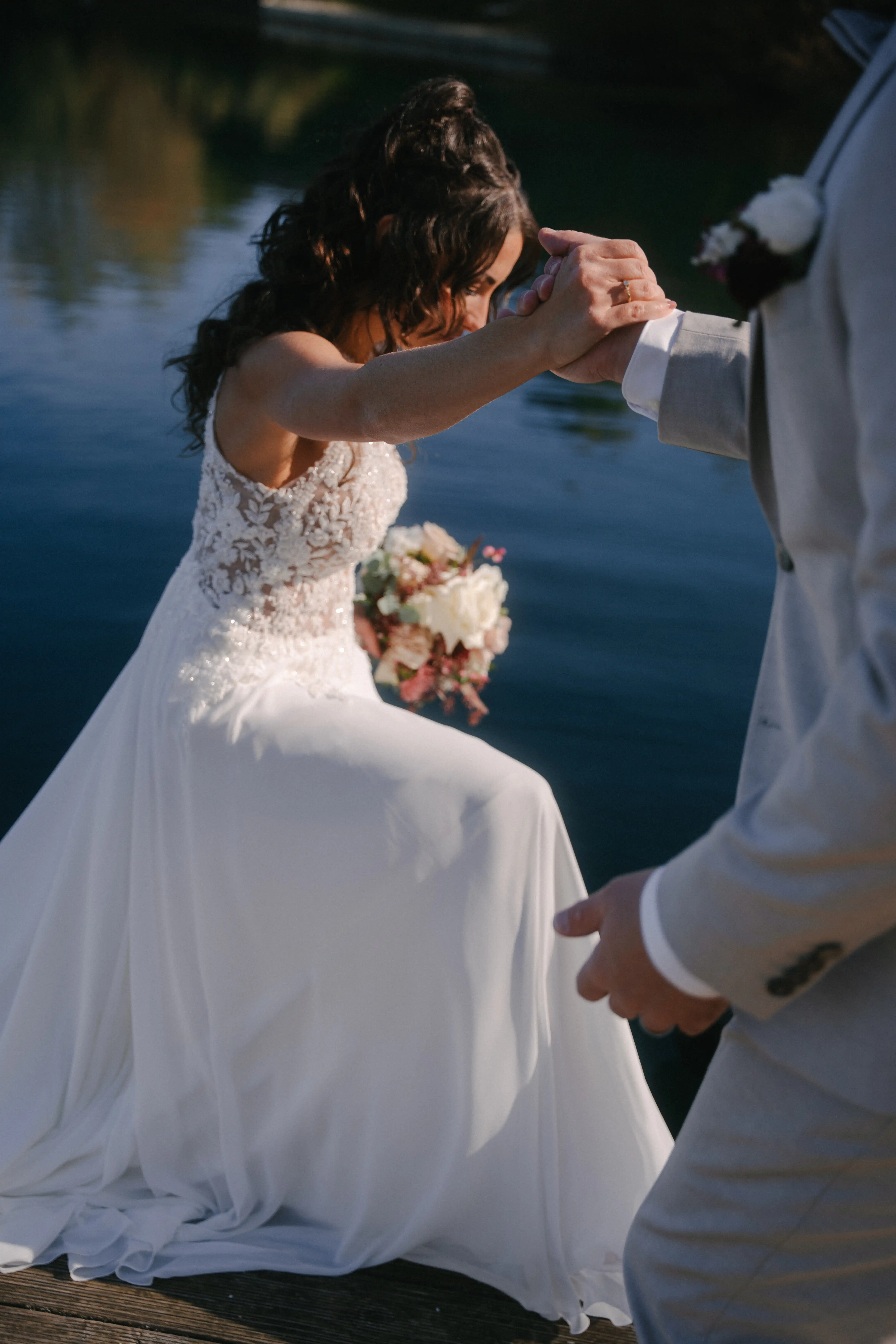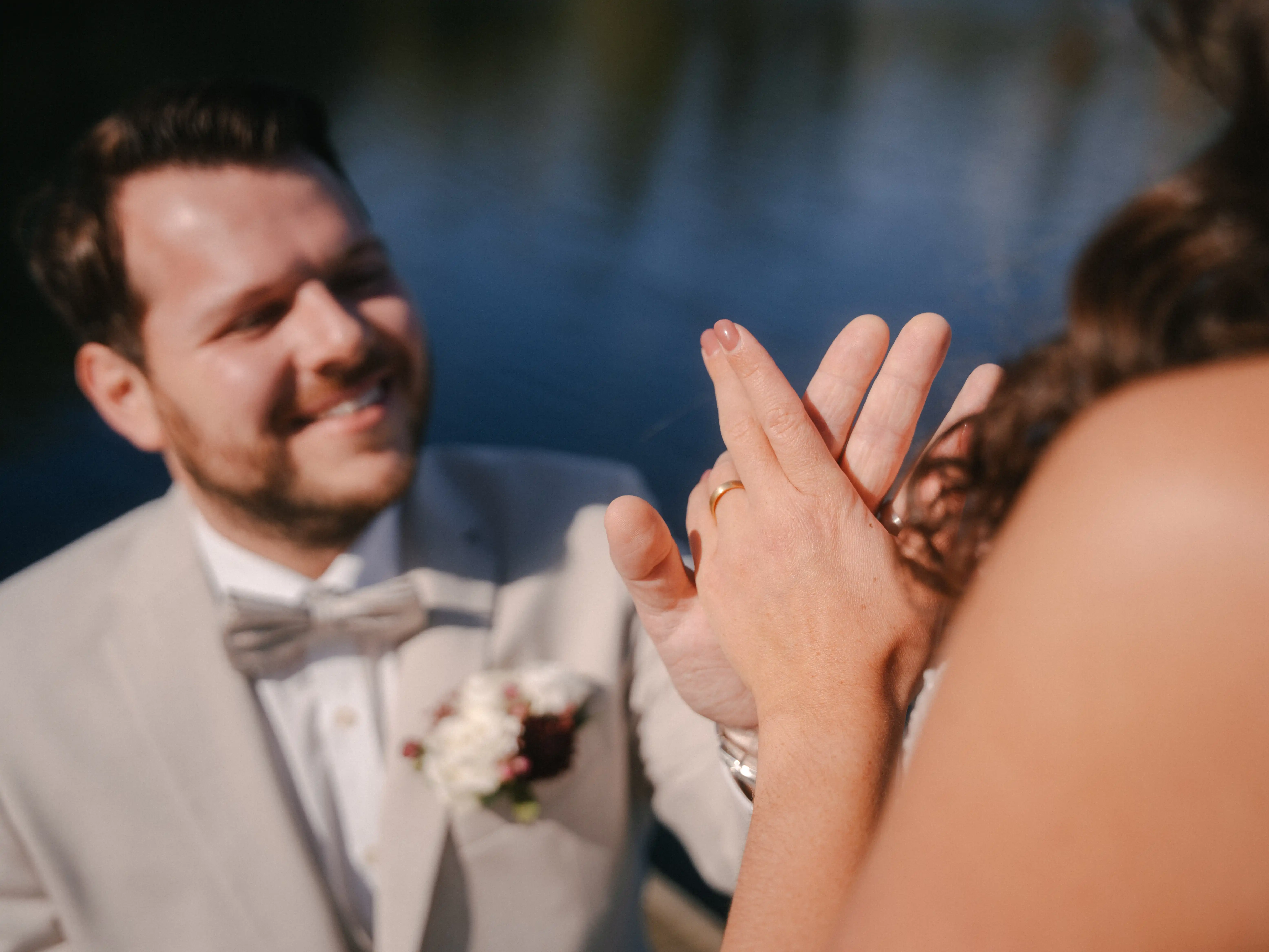 Dass die Ehe mit einer Fahrt übers Meer verglichen wird, hat man schon oft gehört. Vielleicht passte deshalb diese Location so gut zu Sarah & Olli. Auch wenn es hier nur ein kleiner See war. Aber eben mit der gleichen Wirkung, ruhig, intim und voller Symbolik.